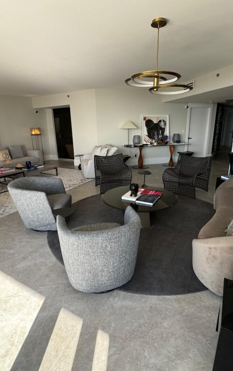 Stunning and fully renovated apartment with Spanish flooring in matte light gray porcelain throughout, a brand-new Monogram & Miele appliances, and granite stones imported from Brazil. All the bathrooms were redone from scratch, including all the finishing touches with the smallest details in good taste and sophistication of the showers, faucets all in matte black, giving a very modern sophistication. The view is both to the south, being able to see along the South Beach, the bay in the background with boats and from the rooms the view to the north of the bay, the Hard Rock hotel and casino, etc. The apartments are all decorated with almost unused furniture by a Brazilian architect. 16 tennis crts, pickleball crts, swimming pools, 2 floors of gym with classes, 3 wonderful restaurants!