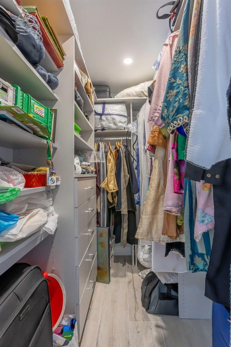 Spacious primary suite includes two custom walk-in closets and a luxurious bathroom with dual sinks, dressing vanity, and jacuzzi tub/shower. Guest bedroom offers an oversized walk-in closet, and the guest bathroom is fully upgraded.
