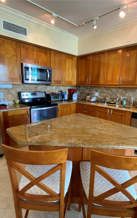 Welcome Home to this beautiful corner unit overlooking Shell Bay Golf Course! This rental is ONLY available starting 4/1/2026 until 12/15/2026. This condo has many lovely features including its' close proximity to many restaurants, shops and gorgeous beaches. Marble, carpet and tile floors flow throughout this nearly 1,600 sq ft condo. Expansive views can be taken in from your private large balcony. Unit features cooking island, granite counter tops, huge master shower, laundry room with side-by-side washer and dryer and much more. The Duo Condominium offers sauna, steam room, heater pool, party room, theatre room, tennis courts, jogging track and gym. ** ONLY AVAILABLE FURNISHED FROM 4/1/2026 to 12/15/2026 **