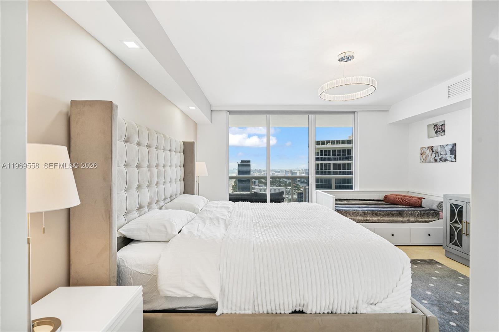 DREAM APARTMENT IN FLORIDA, DESIGNER RENOVATED, OCEANFRONT, IN A PRIME LOCATION. UNFORGETTABLE VIEWS FROM THE 43RD FLOOR OVERLOOKING MIAMI BEACH AND DOWNTOWN. SPACIOUS 3-BEDROOM, 3-BATHROOM APARTMENT, TASTEFULLY DECORATED, WITH AN OPEN-CONCEPT KITCHEN AND BRAND NEW FURNITURE. THE APARTMENT FEATURES FLOOR-TO-CEILING WINDOWS, A LARGE GLASS BALCONY, AND MARBLE FLOORS. KITCHEN APPLIANCES AND CABINETS RECENTLY RENOVATED. MASTER BEDROOM (KING SIZE), SECOND BEDROOM (KING SIZE), AND THIRD BEDROOM (CONVERTIBLE SOFA). EXCELLENT 5-STAR RESORT BUILDING: 3 HEATED POOLS, JACUZZIS, SPA, TWO-STORY GYM WITH SEA VIEW, 24-HOUR VALET, CONCIERGE, RESTAURANT AND POOL BAR, BEACH SERVICE.