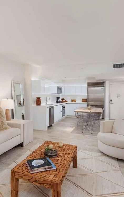 This unit is a 1 bedroom, 1 bathroom apartment with full kitchen, living room & spacious balconies with lovely views of the City of Miami Beach and the Atlantic Ocean. The master suite has a king bed, the pull out sofa in the living room may accommodate 2 more guests. A washer/dryer is installed in this unit for your convenience. The kitchen is fully equipped and prepared for use; contact our private concierge for additional private chef services or maid-service with breakfast. The bathrooms are fully stocked with premium amenities for your personal needs.