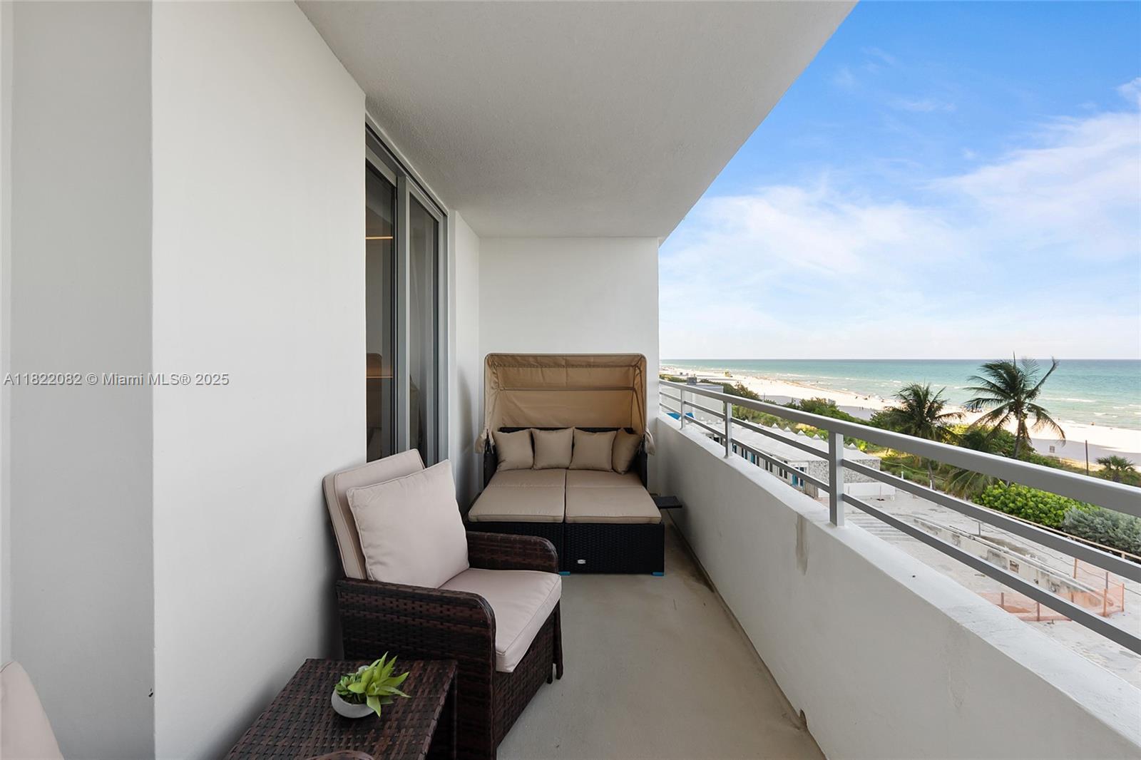 Experience luxury beachfront living at Oceanside Plaza. This fully renovated, furnished 2BD/2BA on the 6th floor of the Morris Lapidus-designed building offers unobstructed ocean views from every room and an expansive terrace for seamless indoor-outdoor living. Features include a split-bedroom layout, sleek porcelain floors, renovated baths, and hurricane-impact windows. Turn-key and move-in ready. Amenities: direct beach access w/service, PH & mezzanine gyms, sauna, valet, 24-hr security, concierge, onsite restaurant, bike & storage rooms. Upcoming: pool, jacuzzi, pickleball, racquetball & basketball courts.