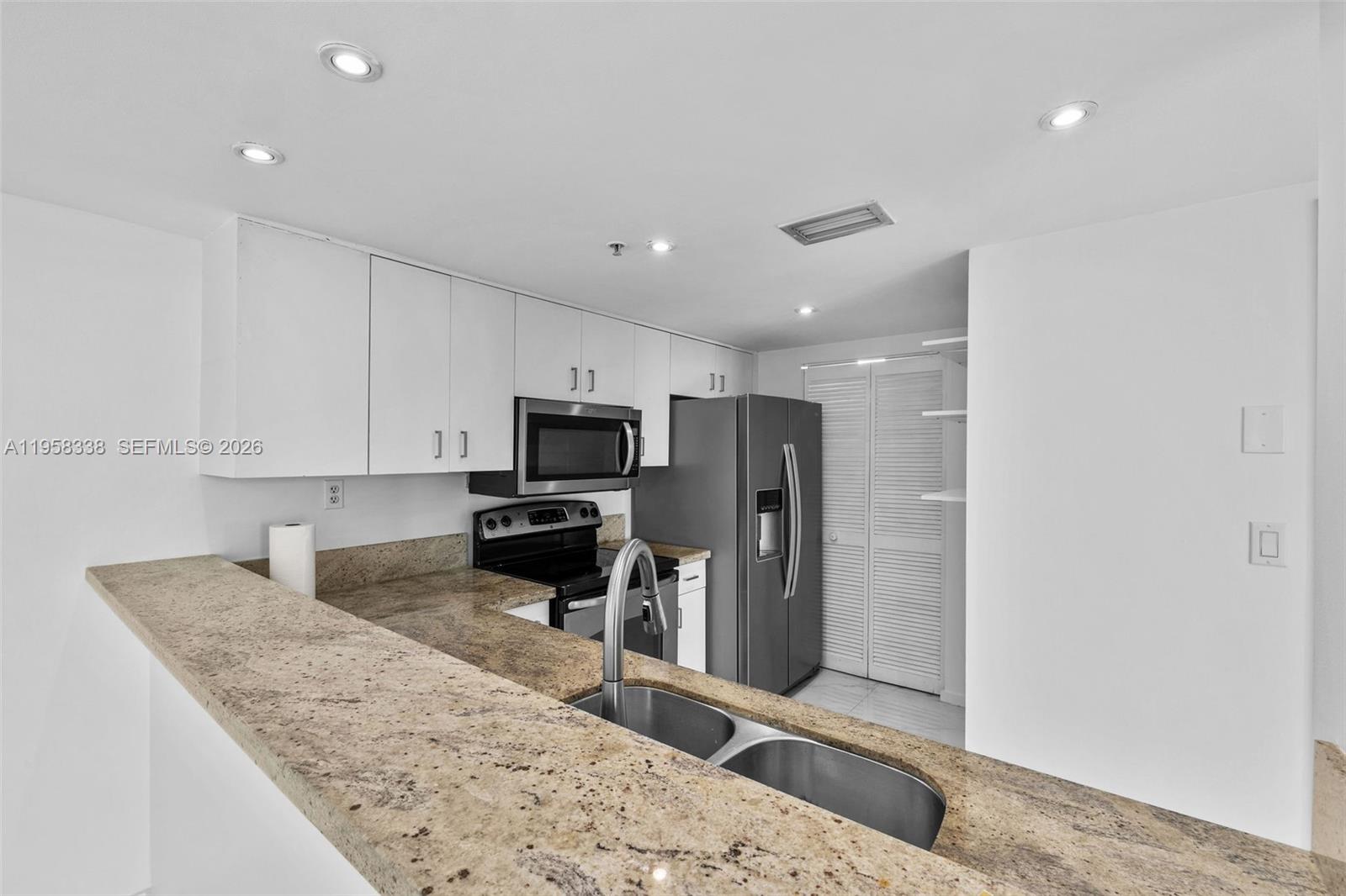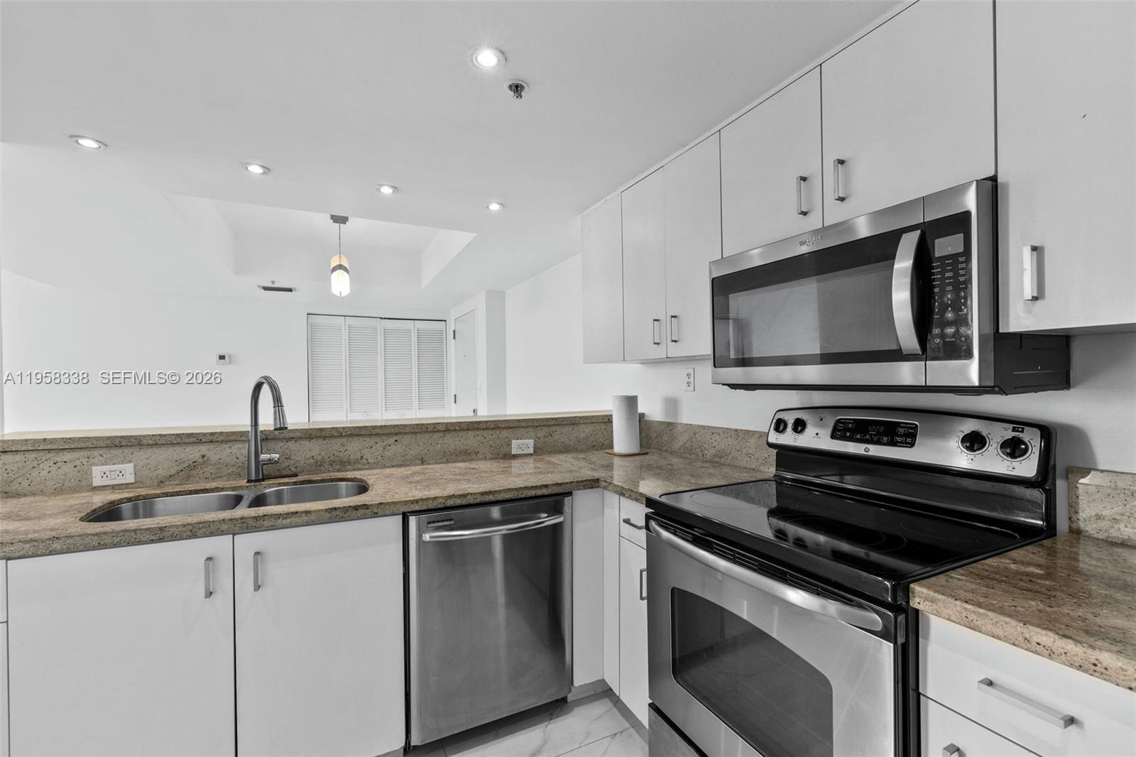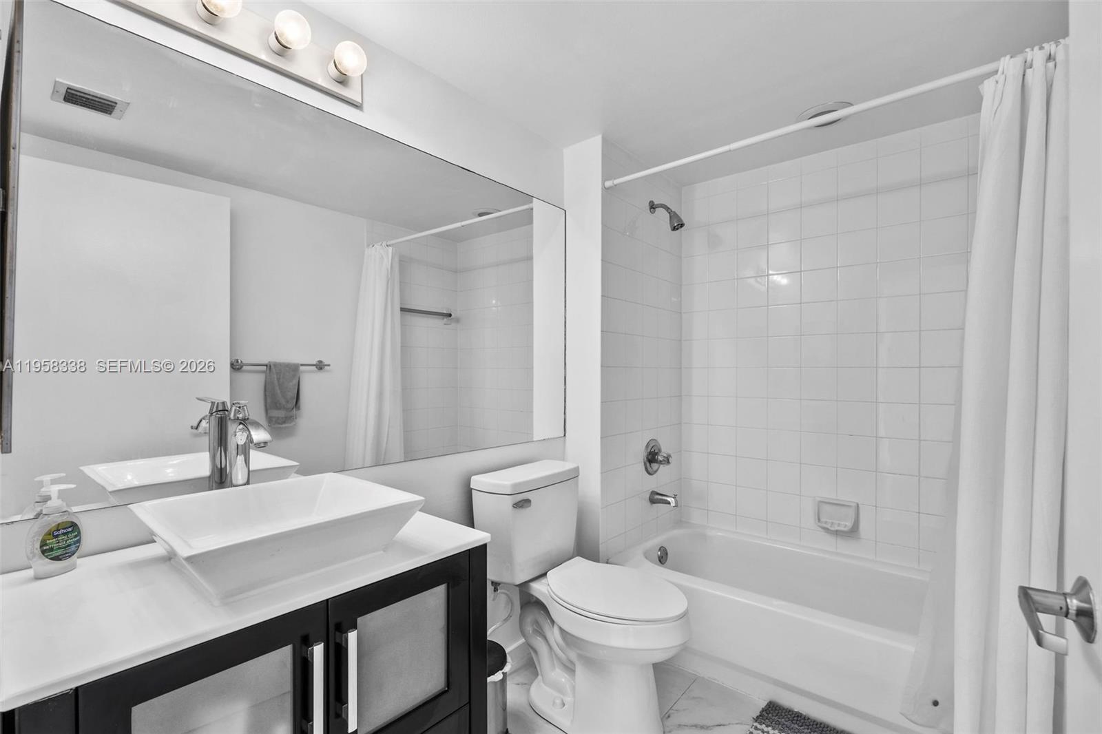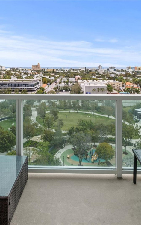 Spacious and bright 2-bedroom, 2-bath residence featuring a split floor plan and floor-to-ceiling windows in the living area with open South Beach and Canopy Park views. The unit offers modern flooring throughout, fresh paint, updated kitchen appliances, renovated bathrooms, and ample closet space. The primary suite includes a separate soaking tub and walk-in shower. Additional features include a private balcony, in-unit washer/dryer, and one assigned garage parking space. Full-service building with bayfront pools, fitness center, tennis court, hot tub, 24-hour security, concierge, and guest valet.