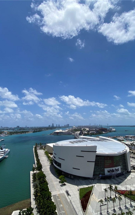 Experience unmatched luxury in this one-of-a-kind residence at Marina Blue. This fully furnished 2-bed 2-bath condo has been exquisitely redesigned with custom finishes tailored to highlight its breathtaking views. From the living room, enjoy front-row seats to the iconic Kaseya Center—home of the Miami Heat and world class concerts—as well as the Port of Miami, where cruise ships glide by daily, the green expanse of Bayfront Park, and the vibrant Bayside Marketplace. Every corner reflects thoughtful design, from elegant finishes to incredible art choices and furniture.