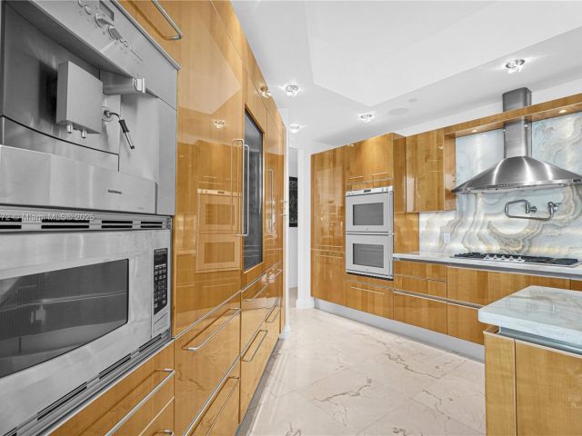 Turnberry Ocean Colony offers this extraordinary residence, providing breathtaking, unobstructed views of the ocean and intracoastal from its NE corner location. With 4 bed + maid , 6.5 baths, and 3,735 SQF of living space. Professionally designed and decorated with high-end finishes. The kitchen is a culinary masterpiece, showcasing custom Snaidero cabinetry and top-of-the-line Subzero and Gaggenau appliances. Turnberry Ocean Colony provides resort-style amenities, including 2 heated pools, a private spa, beach services, a fitness center, a children's club, a hair salon, exceptional restaurants with room service, concierge service, and valet parking.
