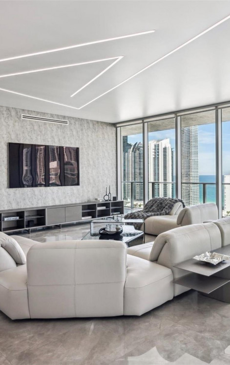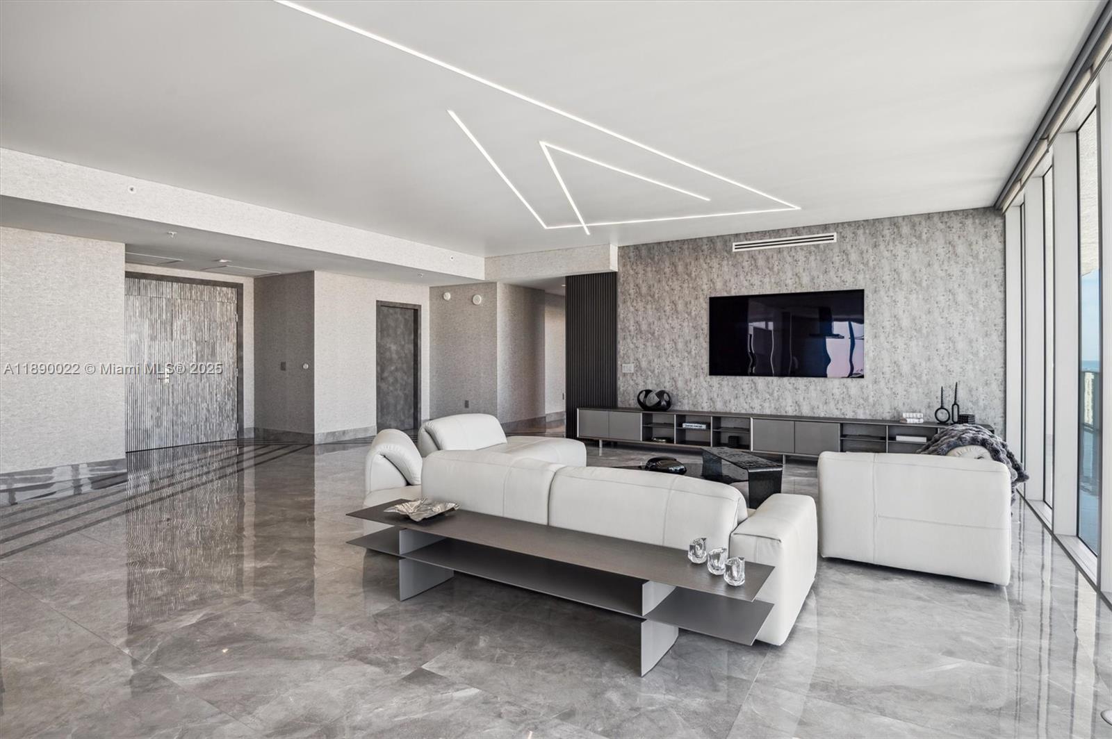 This stunning, state of the art Upper Penthouse is the epitome of turnkey luxury, w/4BR+Den & 5BA, spanning nearly 5,000sf of living space (3,877sf interior+1,011sf wrap around balcony) just steps from the beach. Professionally designed by Intero Futuro and fully furnished to provide an unparalleled living experience. Open layout with stretch ceilings and ultra-modern, linear LED lighting. Floor to ceiling windows with breathtaking views of the ocean, intracoastal and city skyline. Customized closets and a curated collection of luxury Italian furniture. Top-tier chef’s kitchen, Wolf/Sub-Zero/Bosch appliances with marble+adamantium quartzite countertops. Spacious primary suite with stunning ocean views, designer walk-in closet and a spa-like bathroom that creates a serene and lavish escape.