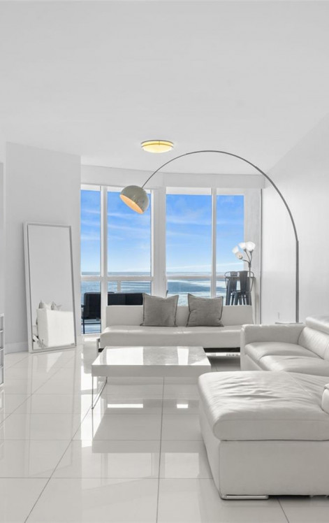 Experience elevated oceanfront living in this stunning 2-bedroom, 2.5-bath residence offering 1,722 square feet of refined interiors at the prestigious Trump Royale Condo. This beautifully appointed unit showcases a bright, open-concept layout with floor-to-ceiling windows framing breathtaking, unobstructed views of the Atlantic Ocean. Glossy white tile floors and a crisp, modern aesthetic create a light-filled, sophisticated ambiance throughout the main living areas. The spacious living and dining areas flow seamlessly to expansive glass walls. The sleek kitchen features contemporary cabinetry, stainless steel appliances, a built-in oven and microwave, and a large island with cooktop and overhead hood—ideal for both everyday living and entertaining. A charming breakfast nook set against panoramic ocean views provides the perfect setting for morning coffee. The generously sized primary suite offers a serene retreat with ample closet space and a spa-inspired en-suite bath. The second bedroom also features its own private bathroom, ensuring comfort and privacy for guests. A convenient half bath serves the main living area. Located in the highly sought-after Trump Royale, residents enjoy five-star resort-style amenities including beachfront service, pool and spa, state-of-the-art fitness center, tennis courts, concierge, valet, and 24-hour security.