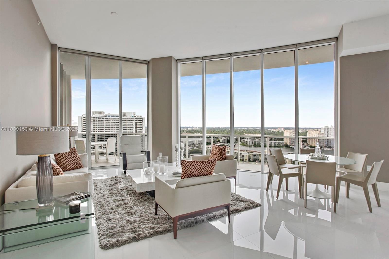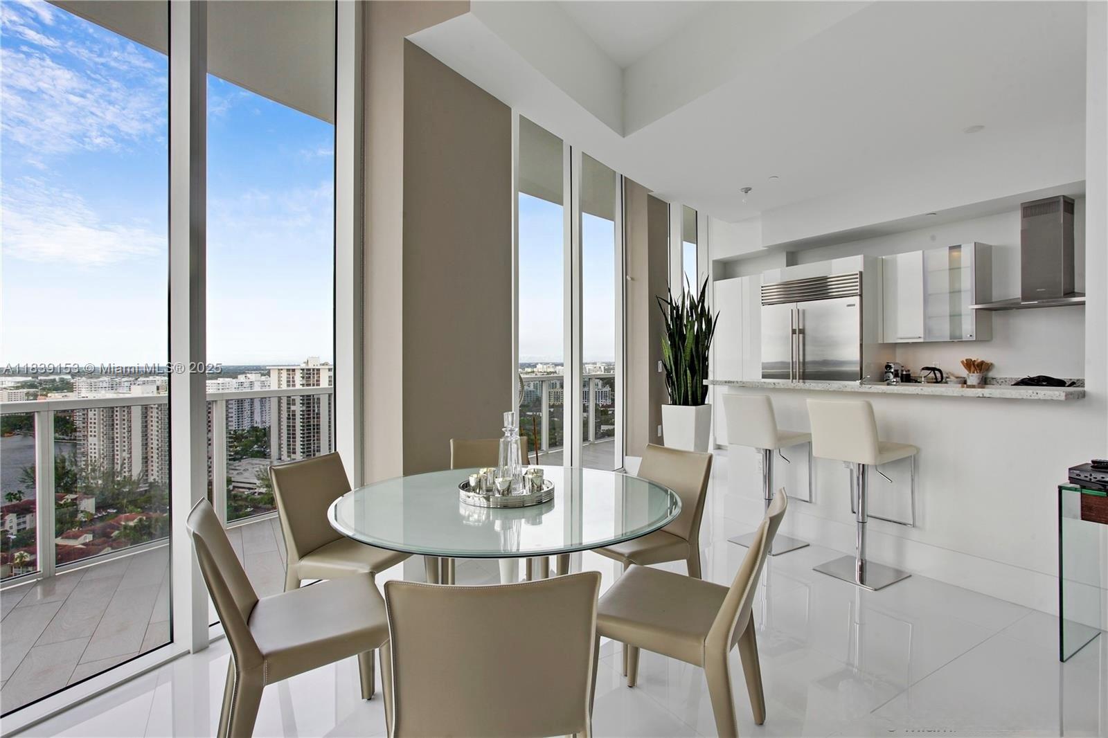 Amazing unit with 12 foot ceilings! This three bedroom, three bath unit has a large wrap around balcony with water, bay, club, and garden views. Kitchen has Miele appliances and Subzero refrigerator. Primary bedroom has a walk in plus a line closet and large bathroom with jacuzzi tub and walk in shower and dual sinks. Laundry room is equipped with a convenience sink. Tastefully furnished, this was a model unit for the developer. The main clubhouse is very close and the second clubhouse is across the building. Williams Island amenities galore, 15 tennis courts, 4 pickleball courts, 3 restaurants, renovated spa, marinas, courtesy bus, walking path, kids playground. Storage included. Contact management for updated membership fees.