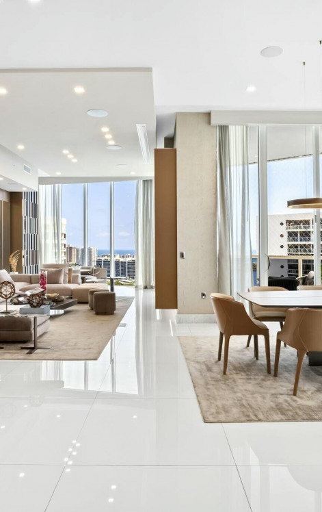 This is ''THE ONE'' @ Bellini. Most desirable residence in the building, half of the top floor. This highly coveted penthouse has 180 degree ocean, bay & city skyline views from FLL to South Beach and beyond. 12-ft floor-to-ceiling impact glass in every room offers dramatic sunrise & sunset vistas--some of the best in South Florida. Private elevator entrance. Over $1.5M in bespoke enhancements by celebrated designers Claudio & Valentina Micu: backlit onyx walls, lacquered channeled doors and trims, custom wood panel walls and cabinetry throughout. A fusion of scale, style & sophistication. Located on exclusive Williams Island with private marina for yachts up to 140 ft, renowned tennis & pickleball, luxury spa, fitness, dining & vibrant social calendar. Truly a ''ONE OF ONE'' property.
