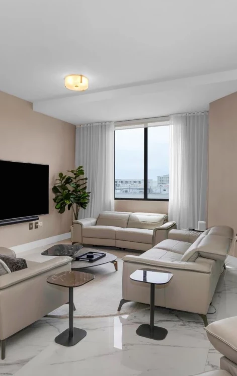 The largest residence in Merrick Manor, this impressive LPH corner unit offers 4 bedrooms and 4 baths with a thoughtfully designed split floor plan. The private primary suite features a spa style bath and custom closets, while a true junior suite provides comfort for guests, complemented by two additional bedrooms ideal for family or office use. The chef's kitchen showcases sleek cabinetry and an expansive island flowing into open living and dining areas. A spacious terrace captures stunning sunset views and natural light. Features include porcelain floors, impact glass, keyless entry, and 2 garage spaces. Enjoy concierge, valet, pool, fitness center, and lounge, all moments from Merrick Park, UM, and Miracle Mile.