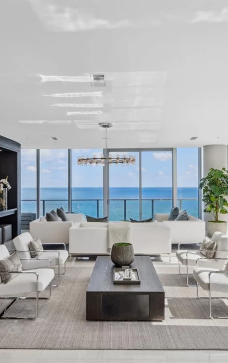 First time on the market, this 4 bed/5 bath penthouse spans 4,300 SF inside with over 5,800 SF of exterior space across two stories, standing as the highest and most coveted residence at Auberge. Boasting 180-degree ocean, Intracoastal, and skyline views, floor-to-ceiling glass, custom millwork, full home automation, formal and informal dining, a den, family room, home office, and a private amenity deck with sunroom, plunge pool, landscaping, and deck suite, reverie comes standard. An expansive primary suite features an ocean-facing soaking tub and his & hers walk-in closets, while a custom keypad, private elevator, and foyer ensure utmost privacy. Furniture negotiable. Five-star amenities include Evara Spa, the anticipated Del Mar, concierge, pools, a state-of-the-art fitness center.