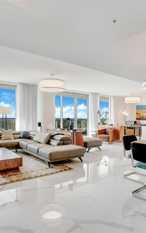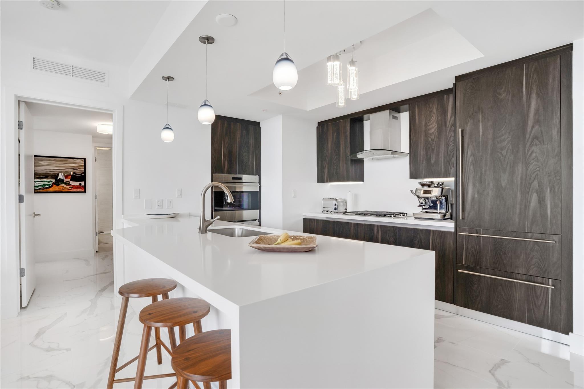 Experience elevated luxury in this 2-bedroom+den residence, featuring a 72-foot terrace with a summer kitchen for alfresco dining and breathtaking sunsets. Designer-decorated interiors feature upgraded flooring, Italian cabinetry, and premium Sub-Zero and Wolf appliances, including a rare gas range, unique to RIVA. Enjoy a custom walk-in closet, full-size laundry, 2 parking spaces & 2 storage units for ultimate convenience. Boaters will love the private marina with easy access. The 40,000-square-foot amenities include a waterfront pool, amazing fitness center, yoga & pilates studios, spa, resident lounge, chef's kitchen for entertaining & guest suites.