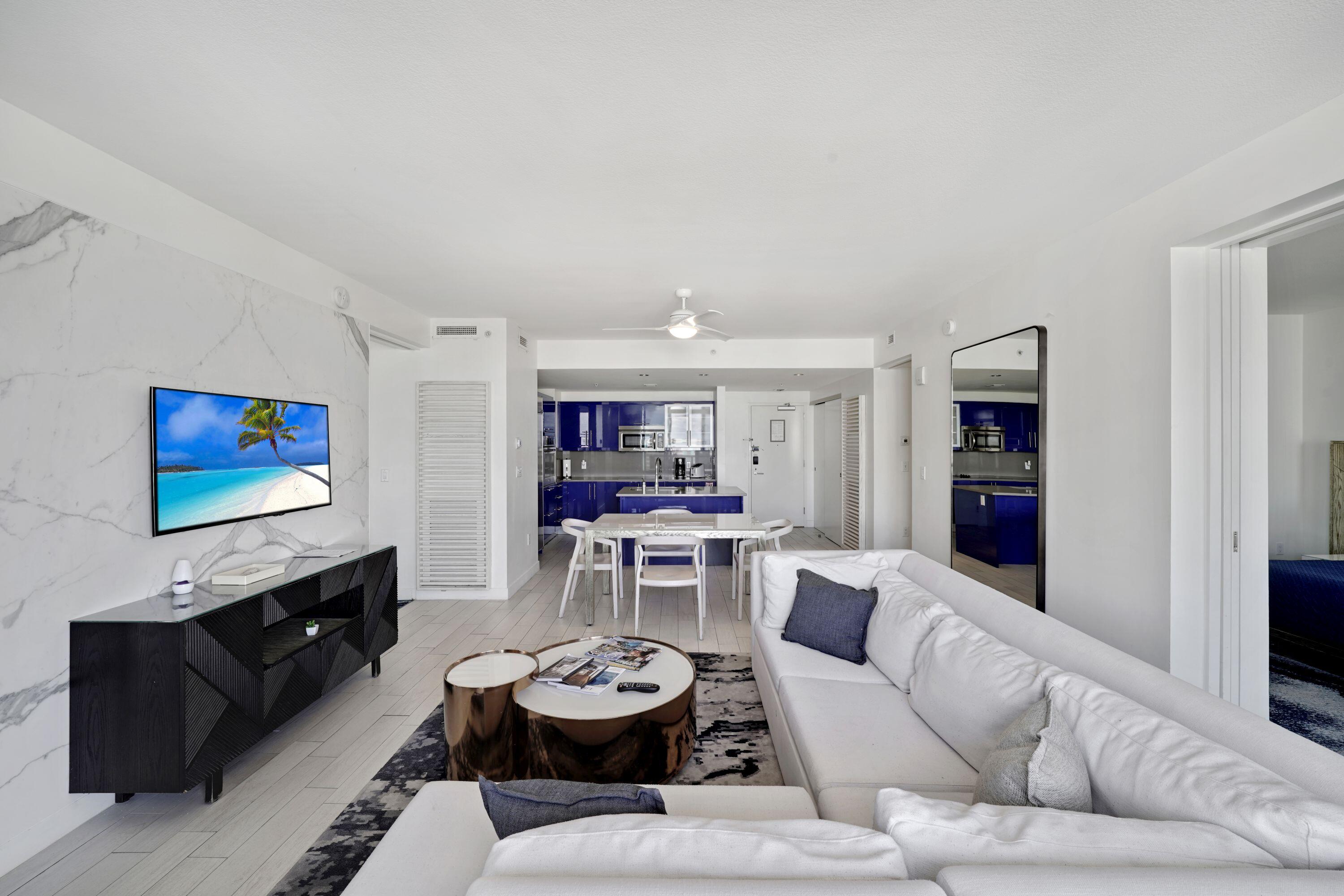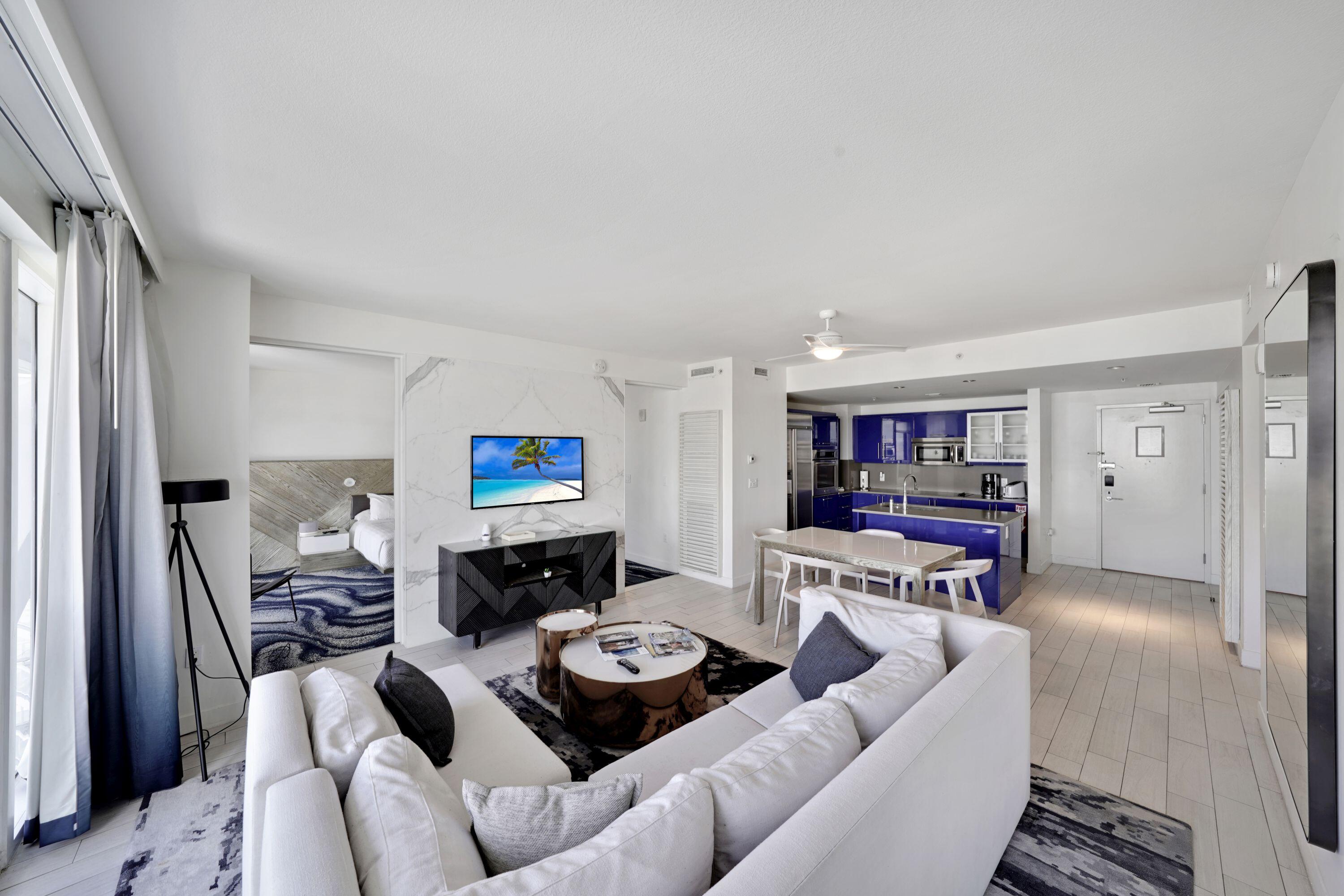 Turn-key and fully furnished 2-bedroom, 2-bath residence at the W Residence, offering comfort and style withaccommodations for 6+ thanks to a queen sleeper sofa. Enjoy resort-style living with no rental restrictions andaccess to world-class amenities including two pools, 24-hour fitness center, on-site restaurants, day spa, and valetparking. This spacious unit features a large open balcony with stunning water views, a full-size kitchen withstainless steel appliances, and in-unit washer and dryer hook up available. Beach club access and one valetparking space are included