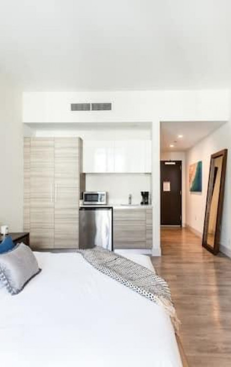Beautiful studio fully furnished and equipped in a luxury Condo Hotel. Just steps from Hollywood Boardwalk with many restaurants, bakery, shops, sports. Amazing rooftop with bar, pool, jacuzzi, lounge areas and spectacular views of the City, Intracoastal and Beach. NO RENTAL RESTRICTIONS!! Association fee includes Cable TV, Internet, water, gym, Electric, facilities, amenities. Unit management by Stay Sol. Don't miss the opportunity to live in paradise!!