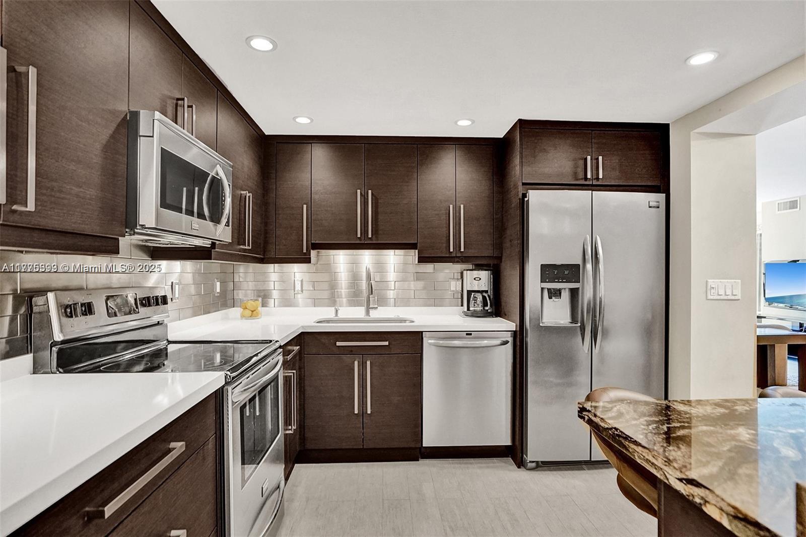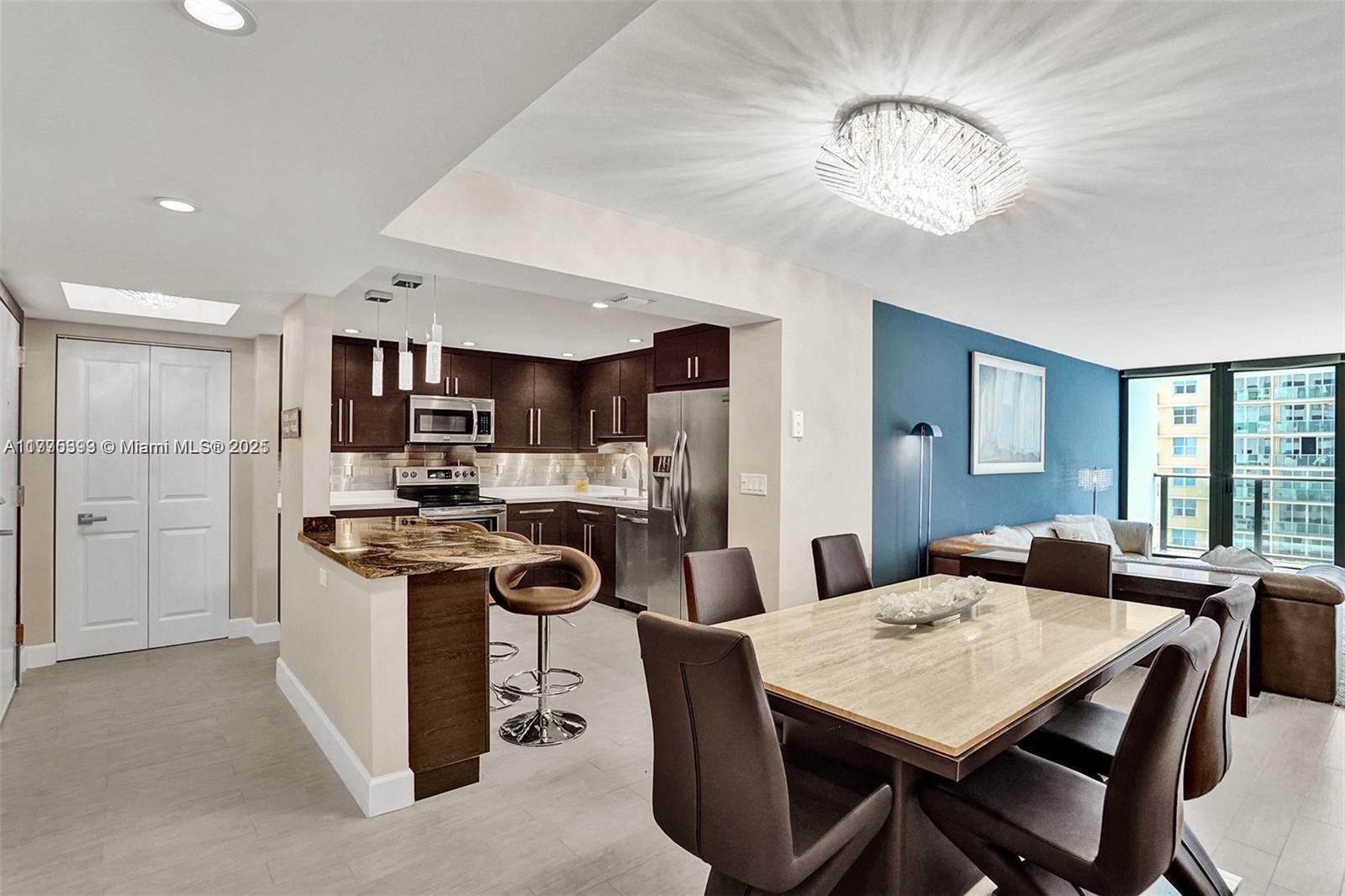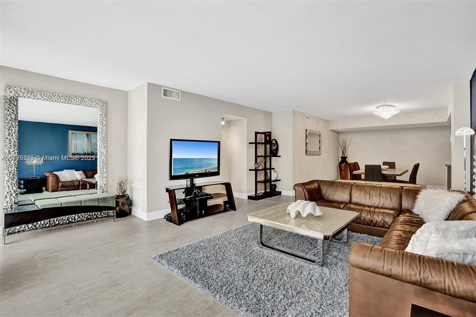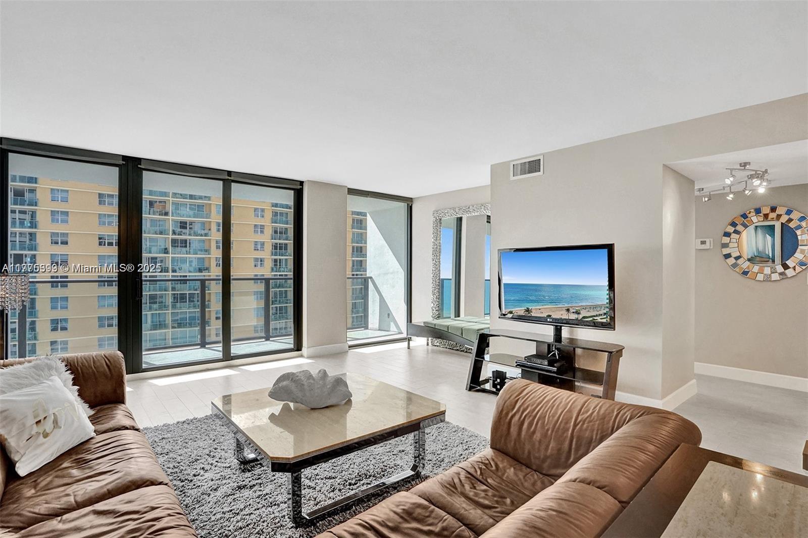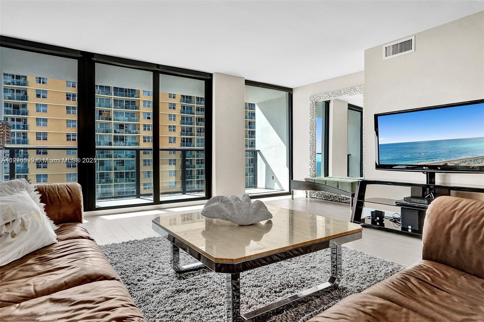 Enjoy the breathtaking views of the ocean and intracoastal from this beautifully renovated 2/2. This unit boasts an elegant open modern kitchen with stainless steel appliances wood cabinets quartz countertops. Unit offers impact windows for peace of mind with a spacious terrace. The bathrooms are fully renovated and unit has tile floors throughout. It comes fully furnished and move in ready! Storage unit included. The building is completely renovated with a modern lobby decorated by Steven G Interiors. You will get to enjoy full service amenities such as two pools, yoga/water aerobics classes, fitness center, restaurant, billiards, salon, and beach access with chairs and umbrellas provided. New Publix is at your footsteps and minutes from shops and dining at the Hollywood Broadwalk.