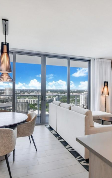 Hyde Beach House is one of the most luxurious condominiums in Hollywood Beach, ideally located on the vibrant Intracoastal Waterway and just steps from the pristine beaches of the Atlantic Ocean. This fully furnished 1 bed, 1.5 baths unit offers stunning panoramic Intracoastal views, a spacious balcony washer & dryer, WiFi, cable TV, a king-size bed in the primary bedroom, and a convertible sofa in the living room. Located on the canal side and facing the beach. Enjoy resort-style amenities including a sports club with tennis and indoor racquetball/basketball courts, two large heated pools, and exclusive access to ETARU Beach Club across the street chairs, towels, umbrellas, and beachfront butler service are part of the building’s services.