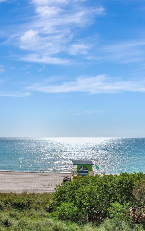 Beautiful DIRECT OCEAN views from this unique 2/2 corner unit located in the elegant beachfront condo Oceanside Plaza, designed by renowned architect Morris Lapidus. This exquisitely remodeled unit has an open floor plan with plenty natural light, a modern white kitchen, stainless steel appliances, granite countertops, sea shell stone floors, custom made closets, new updated bathrooms, new A/C units, lighting, and more. Picture perfect sunrises can be enjoyed from the private, large terrace, or walk to the sandy beach and swim in the ocean.