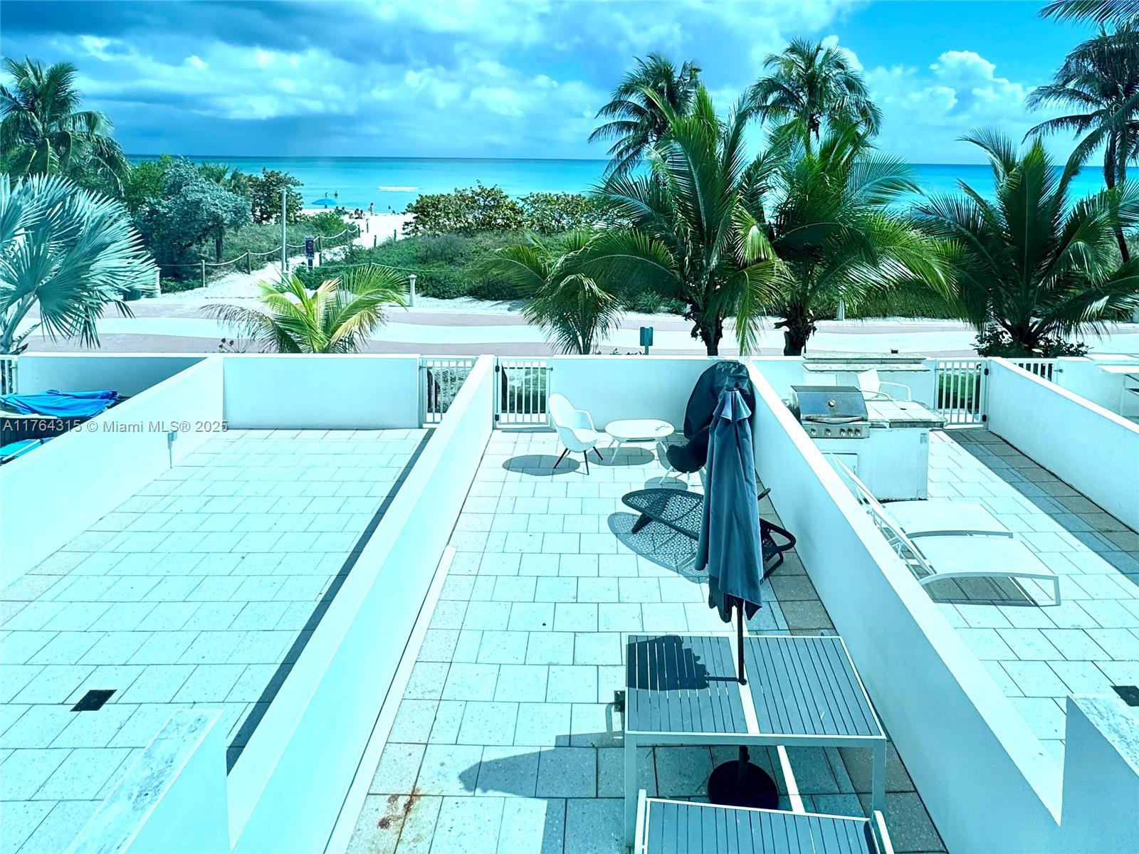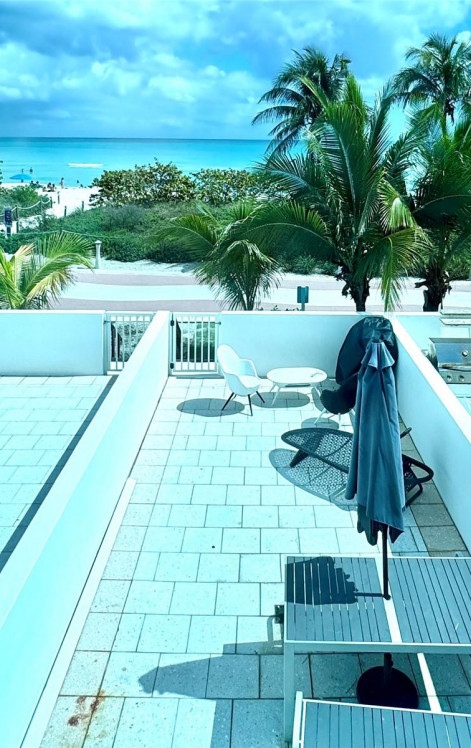 Unique in Miami Beach!!! Direct Ocean Views! Beautiful two story townhouse with an oversized private beach terrace bbq, outdoor dining giving directly to the boardwalk and the sand. One bedroom upstairs with master bathroom, and 2 sleeping sofas with bathroom and laundry room at beach level; Sleeps 6, fully renovated. All the utilities are included in the maintenance fee and no rental restrictions whatsoever (daily rentals are welcomed). 1 valet parking is included for you and your guests. No resort fees! It's a stress free money machine. No other property in Miami Beach is closer to the sand, incredible ocean views from both stories! Don't miss it!