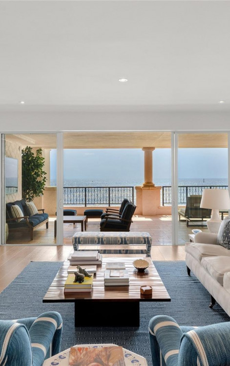 This stunning, completely renovated 3BR/4.5BA Oceanside corner unit spans 3,959 SF & offers a wraparound terrace w/breathtaking sunrises over the Atlantic Ocean & sunsets over the Miami skyline. The Interior features hardwood floors, designer finishes, & custom lighting throughout. An open east-west flow-through layout surrounded by floor-to-ceiling glass, seamlessly connects the living & dining areas to the expansive 1,721SF terrace w/outdoor seating & dining. Bulthaup kitchen sports top-tier Gaggenau appliances, a large island & is complemented by a custom wet bar. A luxurious principal suite features terrace access, ocean views, dual walk-in closets, & dual spa-style bathrooms. Two additional bedrooms both w/ensuite baths, & share a balcony with Miami skyline & Fisher golf course views.