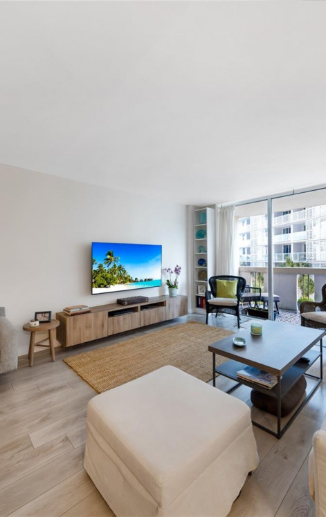 Spacious & elegantly fully renovated, 850 SF, One bedroom in spectacular South Bay Club. Resort style living with an open-air lobby, bay front pool/hot tub deck with bbq area, gym, & on site Cafe/Market. White shaker style custom cabinetry, brass handles, white quartz countertops & stainless steel appliances in kitchen, Cobalt blue cabinetry & tile in the bath, White Oak built-in desk in the living room, Driftwood custom designed walk-in closet with ample shelving, drawers & hanging storage, and Grey Oak, laminated wood plank flooring throughout. NEW 2024 AC.Views of Biscayne Bay & Miami Skyline from your large balcony w/ custom flooring. One covered assigned parking space in the building garage.Located on West Ave, just min to the Park, beach, cafés, restaurants, & Lincoln Road.