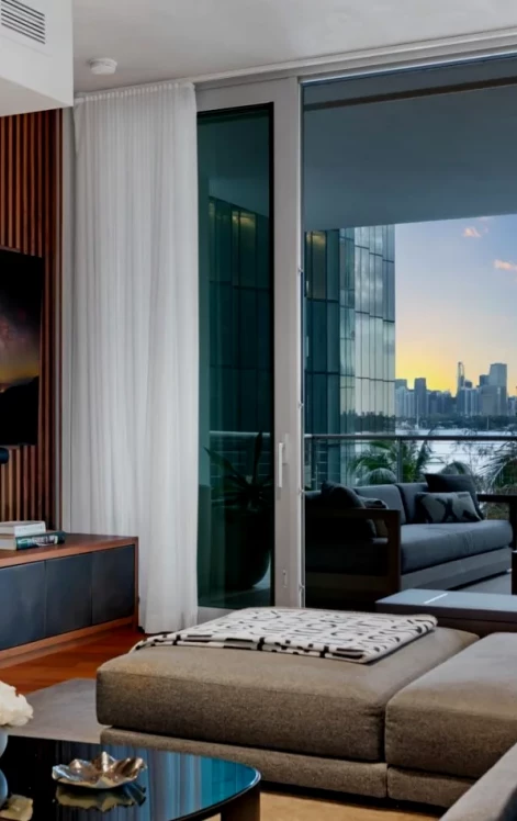 Step Inside With Me! A statement in contemporary design, this designer flow-through corner residence showcases water views and an ideal floorplan. Past the private foyer, curated interiors reveal a grand salon with 10' ceilings, wood floors, custom millwork, bespoke bar, wine wall and wood paneling enhanced by Lutron lighting and automated shades. The chef’s kitchen pairs Calacatta marble with Gaggenau appliances beneath a teak canopy. The primary suite features a Poliform dressing room and spa bath with soaking tub and rain shower. Telescopic glass walls open to a 1,795 SF wraparound terrace with hanging gardens and East/West exposures. This Jean Nouvel 59-residence enclave offers tranquil lagoons, fitness studio, 24hr security, valet, 100’ pool - all just minutes from Sunset Harbour.