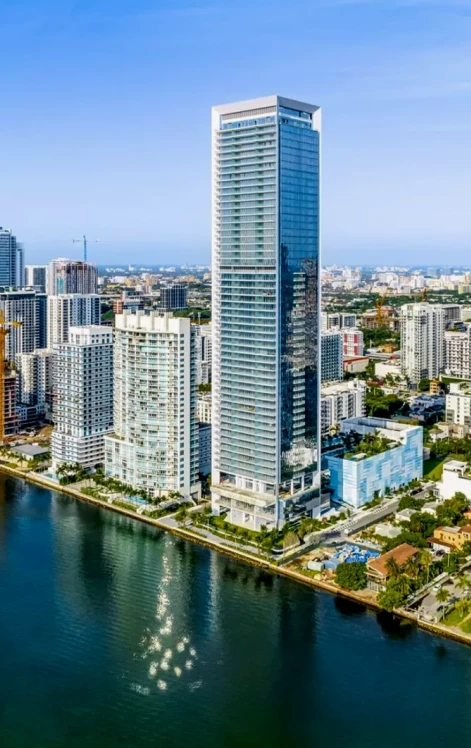 NEVER Occupied, NEW BUILDING, Espectacular corner unit offers 3 offers bedrooms + Den (that can double as small fourth bedroom with bathroom) and 4.5 bathrooms. SQFT (living area) 2,398 + terrace-balcony = 2,586 SQFT. As you enter through the private elevator, a grand foyer welcomes you to a bright and inviting living space with 10 - foot ceilings and floor-to-celling windows that showcase breathtaking bay, skyline and ocean views.