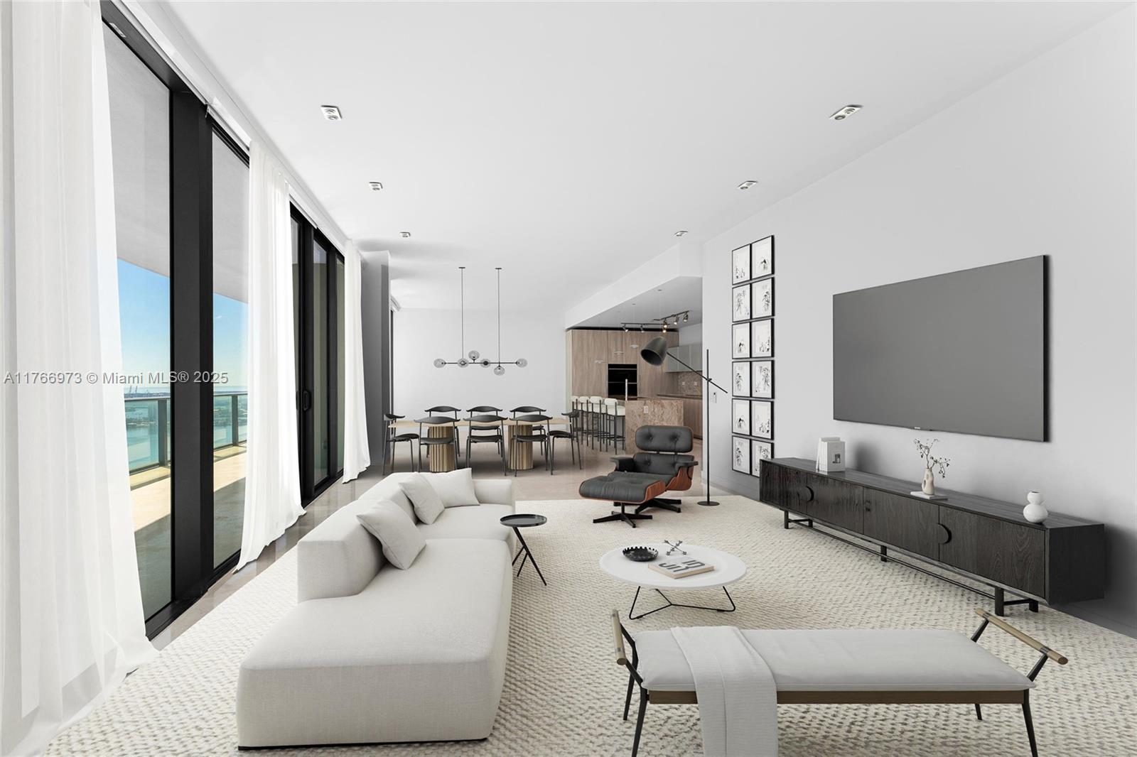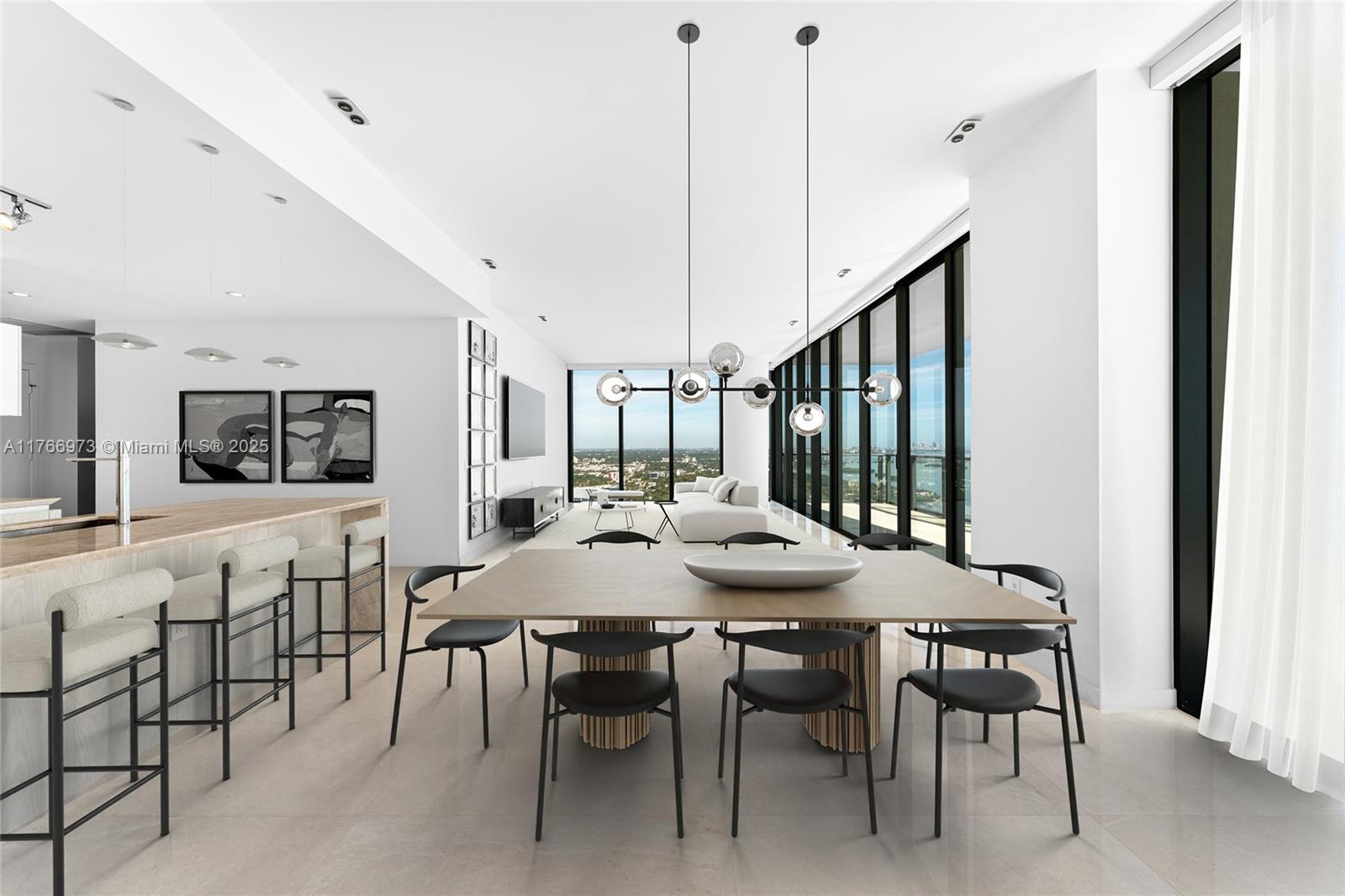 Experience luxury living in this stunning corner penthouse at One Paraiso, in Edgewater. This spacious 5BR,/5.5BA unit, offers 2,887SF of refined living space & private elevator entry. Gres Porcellanato floors throughout, dual terraces w/breathtaking sunrise & sunset views in all directions—North, South, East & West. Open living room extends from the dining area, featuring floor-to-ceiling windows/doors that open to an expansive terrace with direct bay & ocean views. A Chef’s kitchen boasts a marble island, custom cabinetry & top-tier appliances. Primary suite offers direct terrace access, dual walk-in closets, & spa-style bathroom - oversized rain shower & sunken tub. 3 additional BR’s includes a staff BR all with ensuite baths. Amazing location & lux amenities complete this offering.