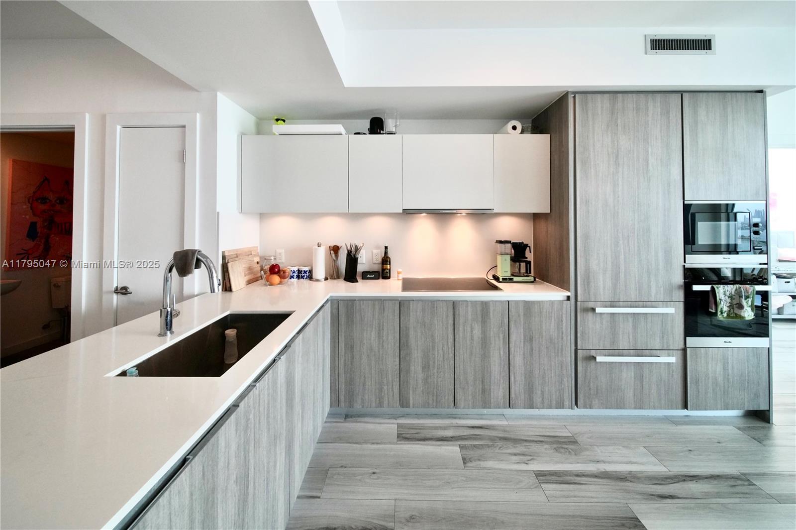 Experience luxury living in this 2-bedroom plus den, 3-bathroom residence at Biscayne Beach. This 1,223 sq ft unit features a private elevator opening directly into the foyer, a spacious balcony with stunning water views, and floor-to-ceiling windows that flood the space with natural light. The modern kitchen is equipped with Miele® stainless steel appliances, including a stovetop, oven, hood, microwave, dishwasher, and refrigerator, complemented by granite countertops. Additional features include a walk-in closet, upgraded vanity, and full-size washer/dryer. Residents enjoy resort-style amenities such as two pools, cabanas, a beach club, fitness center, spa, and 24-hour concierge service. . Located in the heart of Edgewater, steps from Wynwood, Midtown, and the Design District.