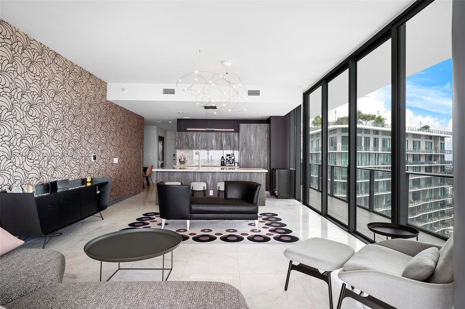 Experience elevated waterfront living in Unit 4207 at Gran Paraiso, a premier luxury residence in Miami's vibrant Edgewater neighborhood. This 3-bed+ den, 3-bath condo spans 1,649 square feet and offers breathtaking, unobstructed views of Biscayne Bay from its expansive balcony. The open-concept layout features floor-to-ceiling glass, sleek porcelain flooring, and a modern kitchen equipped with top-tier appliances. The spacious den provides versatility as a home office or guest room. The building offers A lagoon-style pool with cabanas, State-of-the-art fitness center/spa/hammam, tennis courts, golf simulator,Bowling lanes, billiards room, private screening theater,Wine cellar, cigar lounge,Children’s playground and wading pool, and a Business center. Paraiso District offers a dog park.