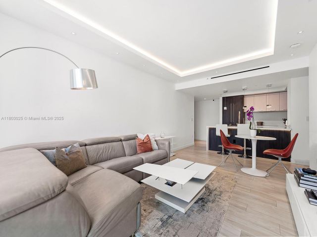 $75,000 in Upgrades. Turnkey luxury,designer-remodeled 1-Bedroom in 500 Brickell East/ NO ASSESSMENTS. Every detail of this home has been meticulously upgraded with premium finishes. Blonde wood-look porcelain tiles runs throughout and carry into the oversized balcony. The open concept living space is elevated with WAC recessed lighting, dropped ceiling cove lighting, and direct LED fixtures. A full size Samsung front load washer and dryer. The spa-inspired bathroom, with marble-style wall finishes, all new plumbing, separate tub and shower w/ body jets, plus ceiling mounted tub filler. The bedroom features an elegant accent wallpapered wall and Lutron Smart lighting, fully controlled from the phone. Set in the heart of Brickell, steps from fine dining, entertainment, and transportation.