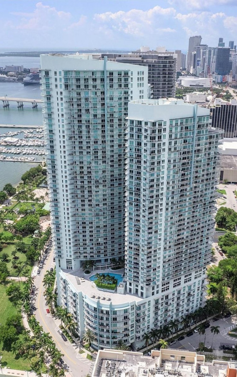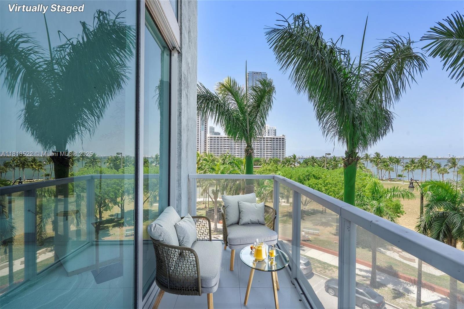 Discover this stunning condo with 16 ft ceilings and water views! Featuring oversized white tile flooring, a versatile 2nd bedroom, a large den, and 2 balconies. Enjoy top-notch amenities: 2 pools, a gym, a cyber room, a residents' lounge, an art studio, a party room, and a theatre room. Across from Margaret Pace Park, it's dog-friendly and walkable to shops, restaurants, museums, AA Arena, and Bayside Market. Quick access to Midtown, the Design District, downtown, Brickell, and not too far from the beach.
