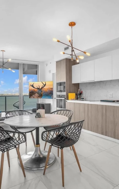 Enjoy spectacular views of Biscayne Bay and 5-star amenities in this elegant 2-bedroom, 2-bathroom condo. Featuring luxurious finishes throughout, including upgraded floors and Miele stainless steel appliances, built-out walk-in closet, floor-to-ceiling hurricane impact windows and sliders, full size washer and dryer in unit, and elevator leading directly into a private foyer. Biscayne Beach offers an array of 5-star amenities, such as two pools, cabanas, a beach club, two tennis courts, and a basketball court. Stay fit with a bay-view fitness gym, take advantage of the dog park, or unwind at the spa and beauty salon. Additional conveniences include a business center, BBQ area, and much more, ensuring a lifestyle of luxury and comfort.