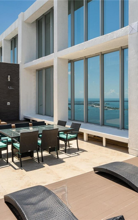 This beautiful 2 story Penthouse boasting incredible bay and city views. The second floor has an open bedroom with private bath that opens to an incredible terrace with hot tub overlooking the ocean. First floor, two bedrooms with high impact sliding doors to balcony. Marble floors, private bar area with wine cooler and open kitchen for a nice entertaining. In the heart of Miami, not far from Miami International Airport and Miami Beach, Design District.