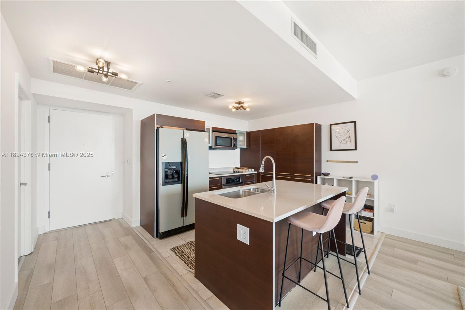 Experience Luxury high rise living in the heart of Edgewater!This lovely 2-bedroom residence features modern style kitchen with stainless steel appliances, newly installed wooden floors throughout,2 full baths and half a bath for your guests , a spacious balcony with both city and bay views. Located across from Margaret Pace Park, it offers easy access to shopping, dining, and entertainment. Amenities include 2 pools, a 2 story fitness center, indoor saunas,private entertainment lounge, business center,library,new indoor play grounds and much more. A perfect blend of luxury and convenience!