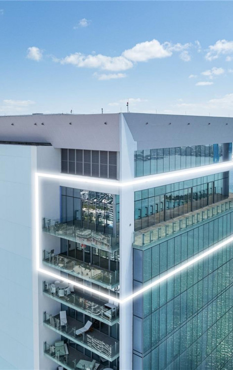 Penthouse 2 at Missoni Baia in Miami’s Edgewater offers refined modern luxury with panoramic views from Biscayne Bay to the city skyline. This rare south-facing residence spans two floors and approx. 7,000 sq ft, including a 2,700 sq ft wraparound terrace up to 12 feet deep, ideal for elevated outdoor living. The upper level features 13-foot ceilings and open-plan living/dining areas, ready for custom or curated designer finishes. A sleek staircase leads to five spacious bedrooms, including a lavish corner master suite and a private theater. Offered with architectural plans and an optional luxury package: Poggenpohl kitchen, designer baths, premium lighting, Crestron tech, top flooring, furnishings, and a Louis Vuitton pool table, defining elite Miami living.