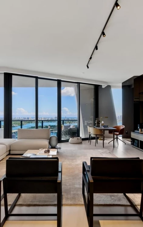 Unit 3502 at One Thousand Museum by Zaha Hadid offers a rare half-floor layout wrapped in floor-to-ceiling glass with unobstructed views of Biscayne Bay, the Atlantic Ocean, and the Miami skyline. This fully furnished Artefacto-designed home features Poliform cabinetry, quartz countertops, Sub-Zero & Gaggenau appliances, a custom wine display, motorized shades, and distinctive built-in furniture throughout. The primary suite includes an added walk-in closet and private terrace with sunset views. Enjoy world-class amenities including the Sky Lounge, Aquatic Center, Wellness Center, rooftop helipad, and 24/7 concierge, valet, and security — all just minutes from Miami’s waterfront, fine dining, and luxury shopping. Artefacto furniture included.