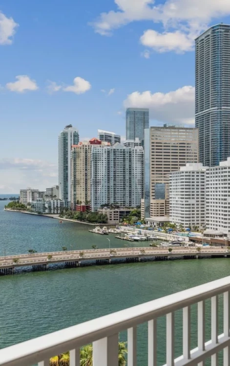 Discover this spacious 2-bedroom, 2-bathroom residence featuring incredible double exposure with stunning views of both the bay and the city from every room. The unit offers an ideal split floor plan, continuous marble floors, and has been freshly painted. The modern kitchen is equipped with white cabinetry and a quartz countertop. Additional features include walk-in closets and new blackout shades on all windows and doors. Enjoy this central location, which offers easy access to the island's walking paths and playgrounds. The property provides convenient access to main roads and is situated close to Brickell City Center, restaurants, entertainment, banking, shopping, and more.