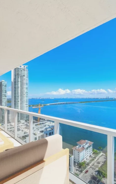 Bright and spacious southeast corner residence on the 31st floor of Bay House. The most desirable line in the building w/ breathtaking water views!! This 3-bed, 2.5-bath home features a modern European kitchen with pantry/laundry area, wraparound balcony off the living area plus a private balcony in the primary suite. The primary bath offers dual sinks, while two. bedrooms share a Jack-and-Jill bath with dual sinks and bathtub/shower. 2 parking spaces available. Bay House offers resort-style amenities: pool deck with cabanas, BBQ area, fitness center, and yoga studio. Perfectly situated in Edgewater with Starbucks and Whole Foods within walking distance, and an easy drive to the beach and airport. Minutes to Design District, Downtown Miami, and Brickell.