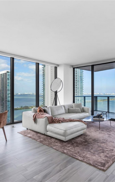 Experience comfortable, modern living at Icon Bay. Take a private elevator directly to this bright corner unit featuring 2beds/2baths + den, to be used as a third bedroom or office. This unit is offered partially furnished and includes upgrades such as refinished cabinets, electronic blinds, custom built-out closets, and a fully built-out den. Floor-to-ceiling windows fill every room w/ natural light and showcase beautiful water views throughout the flow-through layout. Located on the 36th floor, the unit feels calm and private, high above the city. Icon Bay provides outstanding amenities, including a waterfront pool, a modern fitness center, and 24-hour concierge service and optional Valet Parking. Enjoy one of the best views miami has to offer and watch the sunrise every morning from your balcony!