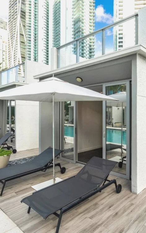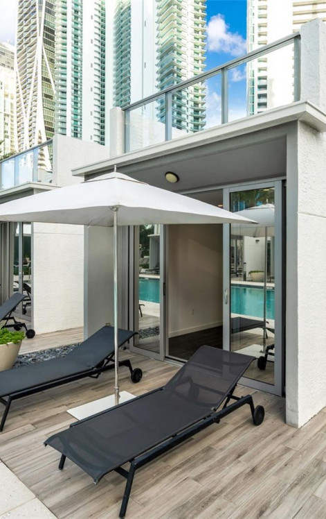 Cabana 15 is an exceptional addition to the Paramount poolside lifestyle. A stylish, two-level cabana escape complete with rooftop terrace and small backyard. The interior features sleek porcelain floors, a convenient kitchenette with refrigerator, efficient mini-split A/C, and full bath with a glass-enclosed shower. Hurricane proof impact windows and sliding doors enhance both comfort and durability throughout the space. Awesome for friends and family gatherings! Cabana can be purchased with or without unit #4009 but must have a condo residence in Paramount.