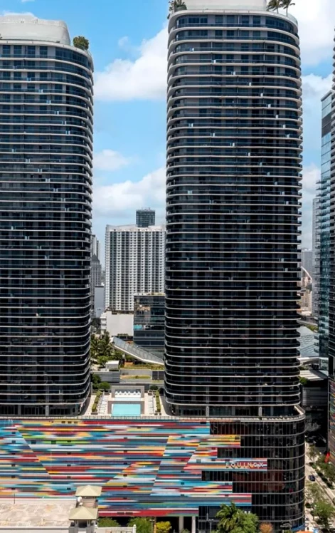 Brickell Heights East is a full-service luxury building offering rooftop pools, state-of-the-art fitness facilities, a spa, and 24/7 concierge service.