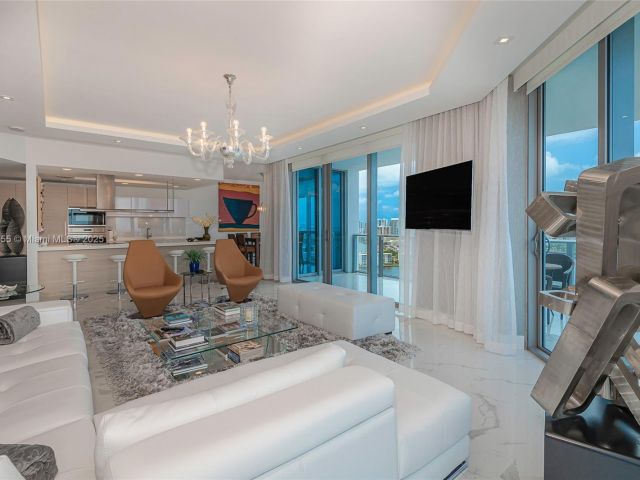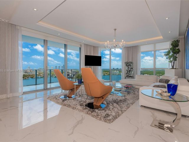 Luxury water front living in this 3 bedrooms and 3.5 bath condo at Marina Palms. Interior designed by Steven G, the unit features floor to ceiling windows offering breath taking views of the Sunny Isles skyline and marina. Primary suite includes a spa-like bathroom and custom walking closet. The open concept kitchen is equipped with top of the line appliances and the living area is ideal for entertainment. Enjoy amenities such as: 24 hrs Concierge, valet , and security, gated marina, yoga studio, Gym, Sauna, infinity edge pool, children pool and play room, pool side cabanas, and outdoor gourmet kitchen, teen game room, business center and conference room. Enjoy Pet walking area. The unit includes 2 parking spaces and storage under AC. Light fixtures in master and living room are excluded.