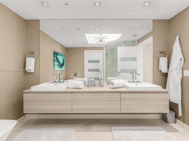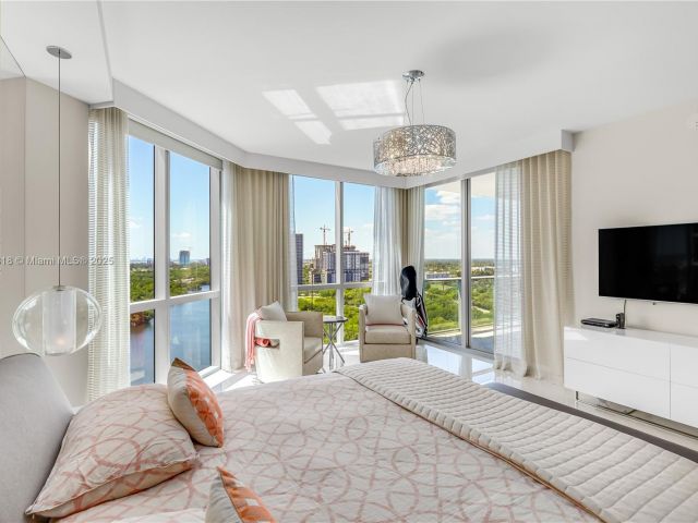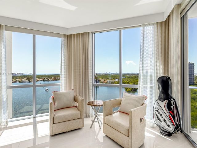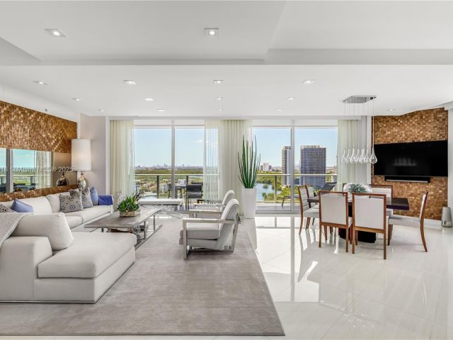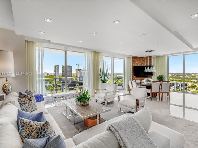 Luxurious Turnkey Corner residence at The Reserve at Marina Palms featuring unobstructed water views, designed, remodeled and curated by Steven G with high-end finishes throughout. Features include luxury lighting, porcelain floors, custom ceilings, and tailored closets. Enjoy two spacious master suites, fully enclosed den ideal as third bedroom or office, chic powder room, TWO assigned parking spaces, and private storage. Residents enjoy world-class amenities: spa with steam and sauna, fitness center, yoga/Pilates studio, news café, business lounge, infinity pool with summer kitchen, kids' pool, play zone, dog trail, and art-adorned grand lobby. 24-hour concierge, gated security, and option to purchase boat slip. Perfect blend of luxury and convenience. MOVE-IN READY!