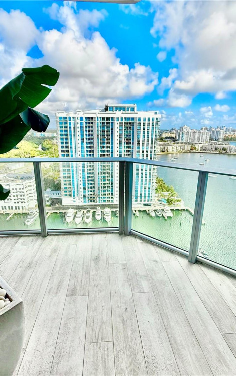 Luxurious turnkey high-floor residence on the 23rd floor at The Reserve at Marina Palms with stunning unobstructed water and city views. 2/2/1,976 sqft! Professionally designed and remodeled with high-end finishes by Steven G. Features include porcelain floors, designer lighting, custom ceilings, and custom closets throughout. Spacious layout offering two master suites. Unit includes two assigned parking spaces and private storage.