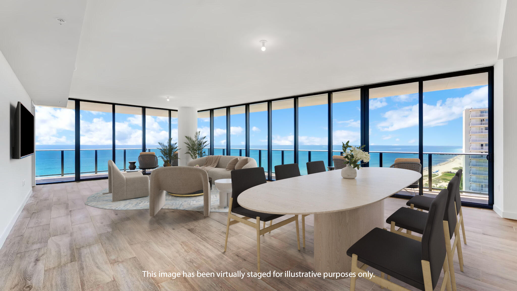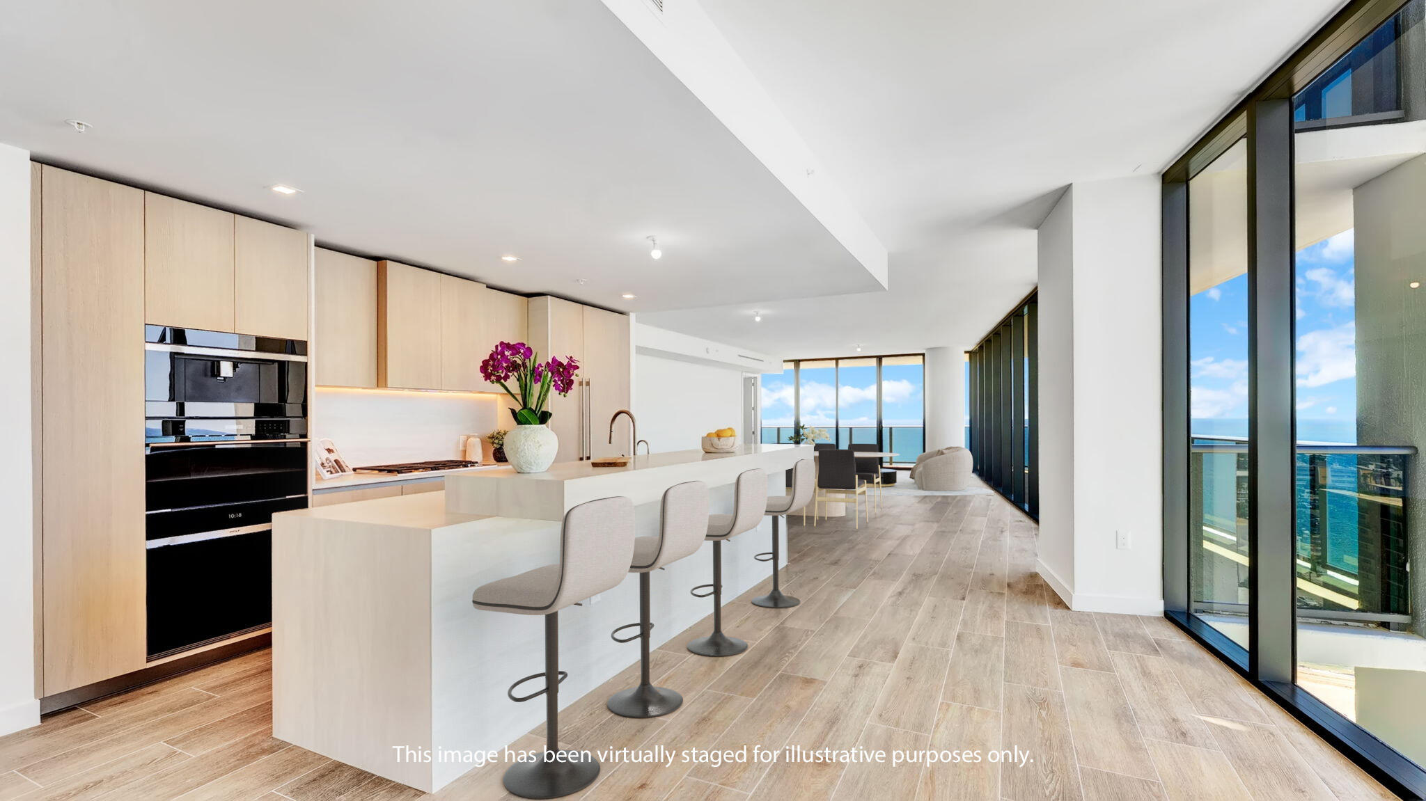 Casamar Residence 1401 in Pompano Beach presents the most luxurious direct southeastern oceanfront views. Step from the private elevator landing into the foyer of this 4-bedroom, 4.5-bath flow-through corner residence with den, boasting 3,390 SF and floor-to-ceiling windows that frame breathtaking Atlantic Ocean vistas. Outdoors, enjoy the tranquil sound of the waves from 1,290 SF of wraparound private terrace space. Residence 1401 features a spectacular family/dining room, spacious den, and a gourmet kitchen with Italian cabinetry, Sub-Zero/Wolf, Asko, and Electrolux appliances, plus a gas cooktop and island ideal for casual dining.