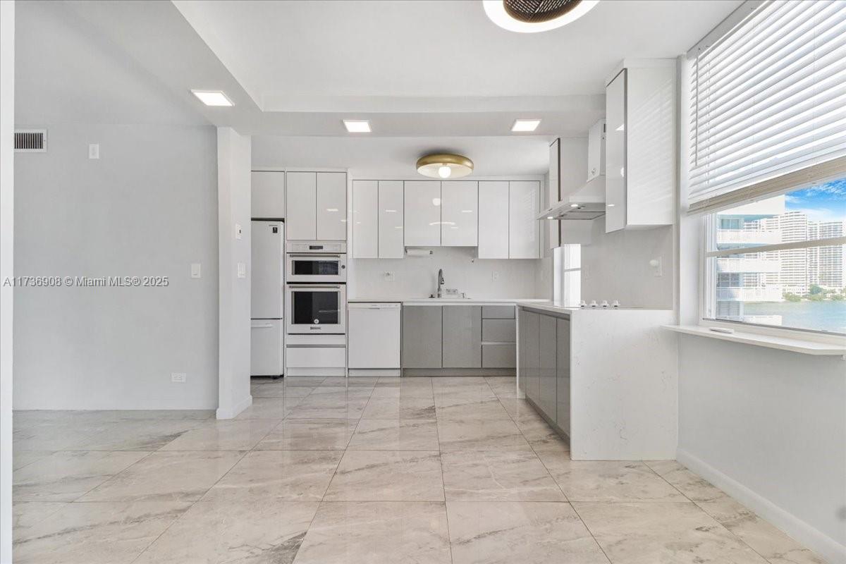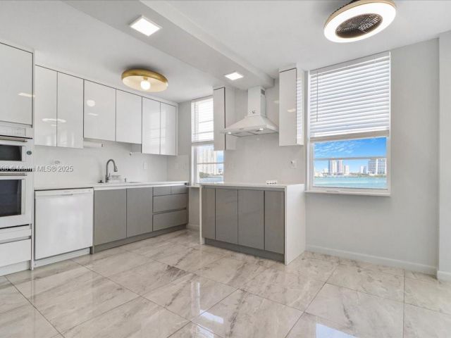 The best Apartment in building. Corner vacant Unit. Almost 2000 s.f. Wide Intracoastal water view from all windows. Beach in 10 min walk Totally renovated and legally reconstructed. Porcelain tile floor, no popcorn, 2full Bdr(3 Bdr), 2 full bath, 2full dens, 1 pantry New doors/locks. L shape balcony 210s.f. Quartz countertop, backsplash, white cooktop, custom Italian acrylic kitchen White high end appliances. Cable, fiber-optic Internet and Total included. All LED lights, spotlights. New 3.5t AC New custom Bathrooms w/one piece toilets. Impact windows WT500 passed 40 years certification. Pool completion in 2025. Parking garage place, storage,24/7 Security,5 new elevators, laundry in. GYM, sauna, play rooms, library, bike room. 10 min to ocean beach. Dogs are welcome. No rent policy but liberal. Close to shops, malls. Free WiFi