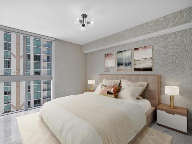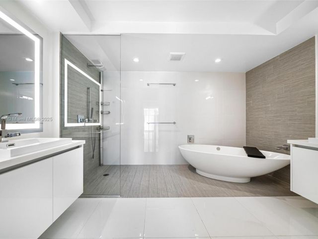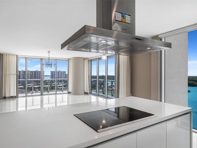 Stunning 3-bed, 3.5-bath corner residence with breathtaking direct water views of the Intracoastal, ocean, and Miami skyline. This fully upgraded unit features 10ft ceilings, floor-to-ceiling impact glass windows, and a spacious wraparound balcony. The open floor plan boasts high-end European appliances, custom window treatments, designer lighting, and sleek finishes. The primary suite offers a walk-in closet and a spa-like bath with a soaking tub and glass-enclosed shower. Includes storage, 1 parking spaces + 1 valet.