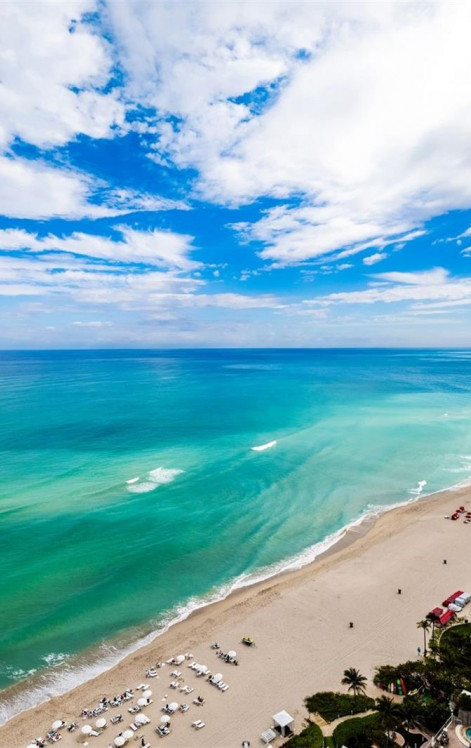 Oceanfront flow-through unit at Trump Palace featuring 2 separate balconies offering panoramic ocean views to the SE & direct intracoastal views to the NW. A private elevator leads you into 2,167 sf of interior living with marble flooring, 3 bedrooms, 3 ensuite bathrooms, dining room, eat-in kitchen with Gaggenau/Sub-Zero/Bosch appliances, powder room & laundry room. The Primary Suite features sweeping ocean views, direct balcony access, walk-in closet & primary bath with an oversized soaking tub, glass-enclosed shower, dual sink vanity &makeup vanity. Residents enjoy exclusive access to Trump Palace amenities & full access to amenities at Trump Royale & International including 1,000 ft of beach front with services, lagoon pool, 2 lap pools, 2-story health spa/gym, kid’s room & tennis.