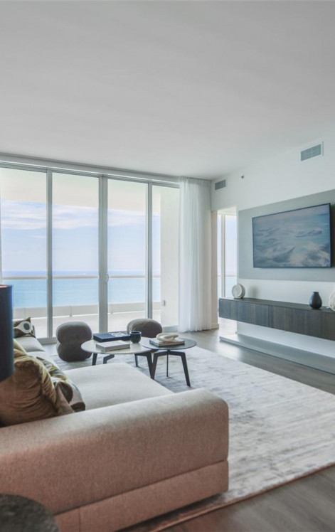 Welcome to luxury living in this 2-bedroom, 2.5-bathroom residence at the prestigious Turnberry Ocean Colony in Sunny Isles. This stunning, fully renovated unit showcases impeccable Italian furniture and bespoke design, creating a modern yet timeless aesthetic.