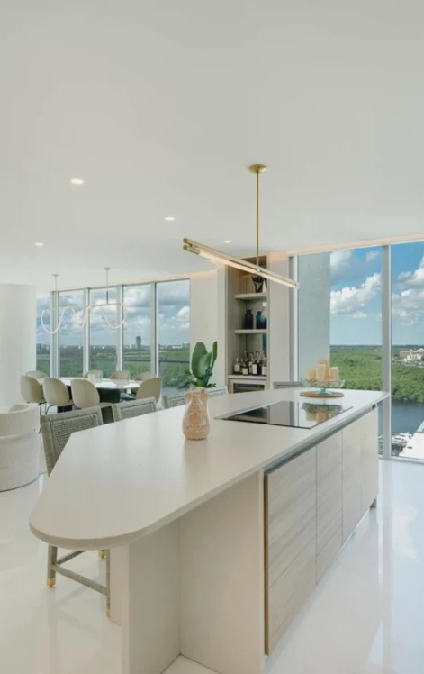 The most unique and beautifully designed unit at Parque Towers also offers stunning views. This Corner 3-Bedroom/3.5-Bath residence is located in the most coveted line in Parque Towers, one of Sunny Isles’ most luxurious buildings with resort-style amenities including multiple pools, impressive gym, and beach club with service. With nearly 1,900 Sq.Ft. of interior living area, 5-1902 offers spectacular unobstructed sunrise & sunset views of the bay, intracoastal & Downtown Miami skyline, welcoming you as you enter this modern & bespoke unit designed by Moniomi. Highlights include custom silestone-finished kitchen, elegant 36x36 marble floors, alcove recessed lighting, Bosch appliances, Lutron lighting system, electric blinds, custom closets & doors, wine fridge, large balcony, stunning primary bath w/ floating tub & dual sinks. 2 parking spaces & storage are included. Tasteful touches include gorgeous wallpaper, sculpted & rounded walls, adding to the elegance of this unique property. No expense was spared in designing this unit to the highest of standards – “It’s elevated without being obvious,” as quoted by Moniomi designers in a Luxe Interiors & Design magazine feature. Come experience tropical Miami elegance in this beautiful, one-of-a-kind and turnkey home.